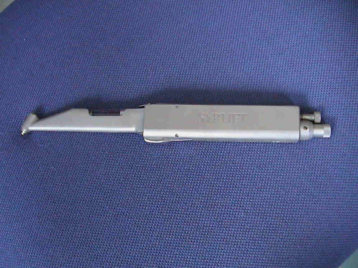 この注射器、先端から圧縮されて霧状になった麻酔液を